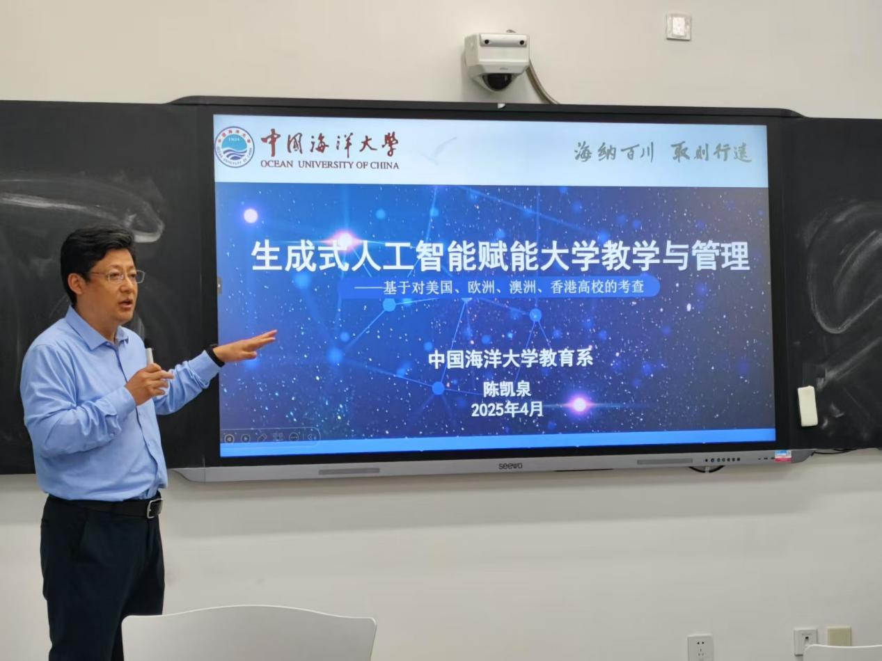 中国海洋大学教育系党总支书记、高级学习实验室主任、数智教育研究所副所长、中国教育技术协会信息技术教育专业委员会理事陈凯泉教授则从国际视角出发,以《生成式人工智能(GAI)赋能大学教学与管理》为题,介绍了欧美及香港高校在GAI技术应用中的典型案例。他详细剖析了GAI在个性化学习辅助、智能写作反馈、校园服务优化等场景的实践成果,特别提到麻省理工学院斯隆管理学院的创新管理模式,为国内高校数字化转型提供了宝贵借鉴。