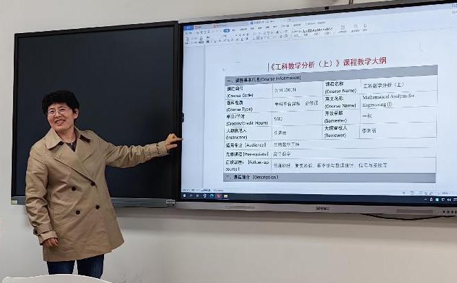 李秀丽教授介绍了教学大纲的意义、结构和作用,并以“工科数学分析”为例,引领大家交流、讨论了教学大纲通用模板的改进问题。
