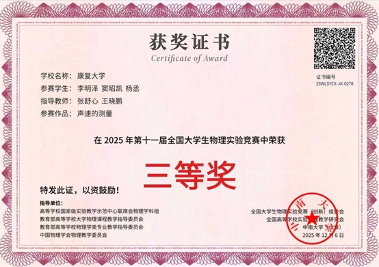 近日,第十一届全国大学生物理实验竞赛(创新)和山东省大学生物理创新竞赛获奖名单相继公示,我校学子首次组队参赛即表现亮眼,共斩获全国三等奖1项、全国优秀奖4项、省一等奖1项,学校同时荣获 “全国优秀组织奖”,实现了我校在该类竞赛中的开门红。